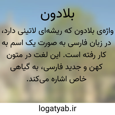 واژه‌ی بِلاَدون که ریشه‌ای لاتینی دارد، در زبان فارسی به صورت یک اسم به کار رفته است. این لغت در متون کهن و جدید فارسی، به گیاهی خاص اشاره می‌کند که معمولاً با نام بِلادُن شناخته می‌شود. این گیاه که در منابع علمی و گیاه‌شناسی با نام‌های دیگری نیز ثبت شده، از دیرباز مورد توجه حکما و اطبا بوده است. برای به دست آوردن اطلاعات دقیق‌تر درباره‌ی ویژگی‌ها، خواص و کاربردهای این گیاه، باید به مدخل بِلادُن در فرهنگ‌های معتبر فارسی و کتب تخصصی مراجعه نمود.