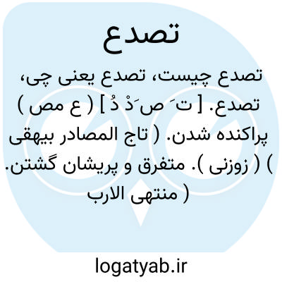 تصدع. [ ت َ ص َدْ دُ ] ( ع مص ) پراکنده شدن. ( تاج المصادر بیهقی ) ( زوزنی ). متفرق و پریشان گشتن. ( منتهی الارب ) ( ناظم الاطباء ) ( از اقرب الموارد ). || گریخته غایب شدن در زمین. ( منتهی الارب ) ( از اقرب الموارد ). || شکافته شدن و پاره پاره شدن. ( ترجمان جرجانی ترتیب عادل بن علی ). شکافته شدن چیزی. ( منتهی الارب ) ( از اقرب الموارد ).