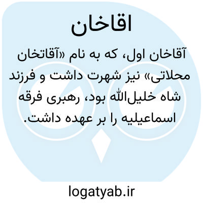 ( آقا خان ) آقا خان اول مشهور به آقاتخان محلاتی ابن شاه خلیل الله رئیس فرقه اسماعیلیه ( و. ایران ۱۸٠٠ م. ف. هند ۱۸۸۱ م. ) چون حاج عبد المحمد محلاتی رفتاری کرد که آقا خان آن را نپسندید و از آنجا که حاج میرزا آقاسی وزیر اعظم وقت حاج عبد المحمد را مورد توجه قرار داده بود این امر بر آقا خان گران آمد و قلعه بم را تسخیر کرد. ولی فیروز میرزا حکمران کرمان قلعه را از او باز ستد و او را روانه تهران کرد ( ۱۲۵۵ ه. ق. ) اگر چه حاج میرزا آقاسی در ظاهر با وی بملاطفت رفتار می کرد ولی چون عبد المحمد مذکور را وا داشت تا شفیع او گردد کدورت پیشوای اسماعیلیه مرتفع نگردید و ببهانه سفر مکه از تهران خارج شد و در حدود یزد و کرمان به مخالفت بر خاست. بهمن میرزا بهائ الدوله بمقابله او شتافت و پس از دو جنگ آقا خان بجانب لار رفت و از آنجا راه هند را در پیش گرفت و تا زمان مرگ رئیس فرقه اسماعیلیه بود. یا آقا خان دوم پس از پدر خود آقا خان اول جانشین او شد. ( ف. ۱۸۸۵ م. ) یا آقاخان سوم. پس از آقاخان دوم تنها پسرش به نام آقا سلطان بعنوان آقاخان سوم جانشین او شد. ( ف. ژنو ۱۳۳۶ ه. ش /۱۹۵۷ م. ) یا آقا خان چهارم پس از آقاخان سوم بنا بوصیت او نوه پسری وی شاه ( پرنس ) کریم خان پسر علیخان ( ف. ۱۹۵۷ م. ) به پیشوایی اسماعیلیه منصوب شد.