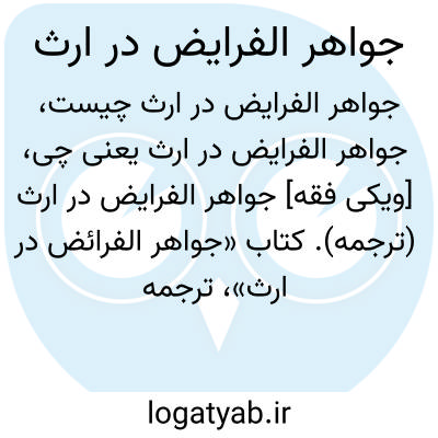 [ویکی فقه] جواهر الفرایض در ارث (ترجمه). کتاب «جواهر الفرائض در ارث»، ترجمه فارسی «جواهر الفرائض» خواجه نصیر است. ترجمه و پانوشت کتاب، توسط محمد حسن شفیعی شاهرودی و تحقیق آن به همت شیخ خالد غفوری و شیخ کاظم فتلی صورت گرفته است.