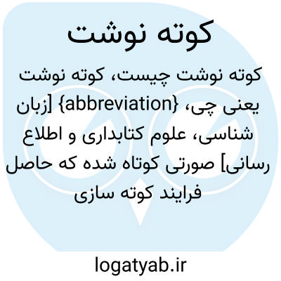 {abbreviation} [زبان شناسی، علوم کتابداری و اطلاع رسانی] صورتی کوتاه شده که حاصل فرایند کوته سازی است