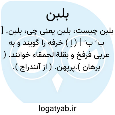 بلبن. [ ب َ ب َ ] ( اِ ) خرفه را گویند و به عربی فرفخ و بقلةالحمقاء خوانند. ( برهان ).پرپهن. ( از آنندراج ). بقلةالحمقاء. ( الفاظ الادویة ).و بخاطر میرسد که این لفظ پلپهن باشد، به هر دو بای فارسی و زیادتی ها، چه «را» را به لام بسیار بدل کنند. ( از جهانگیری ). فرفهن. فرفخ. رجوع به خرفه شود.