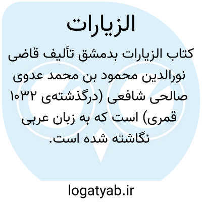 کتاب الزیارات بدمشق تألیف قاضی نورالدین محمود بن محمد عدوی صالحی شافعی (درگذشتهی ۱۰۳۲ قمری) است که به زبان عربی نگاشته شده و به اماکن زیارتی شهر دمشق و نواحی اطراف آن میپردازد. این اثر، نامهای شخصیتهای بزرگ دفنشده در آن منطقه را در برمیگیرد و منبعی معتبر در شناخت تاریخ محلی و زیارتگاههای شام بهشمار میرود.