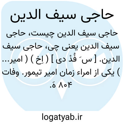 حاجی سیف الدین. [ س َ فُدْ دی ] ( اِخ ) ( امیر... ) یکی از امراء زمان امیر تیمور. وفات 804 هَ. ق. به نیشابور. صاحب حبیب السیر گوید: «امیر تیمور گورکان بعد از آنکه یک ماه در حدود نخجوان کامیاب و کامران اوقات گذارنید واز جانب گرجستان ملک گرگین با پیشکش فراوان بدرگاه عالم پناه رسید عزم قشلاق قره باغ فرموده از راه گنجه وبردع نهضت کرد. در 22 ربیعالاَّخر سنه اربع و ثمانمائه ( 804 ) ماهچه لوای کشورگشا سایه وصول برآن دیار انداخته قبه بارگاه جم اقتدار و شاهزادگان کامکار به اوج فلک دوار افراخته شد. در آن اثنا خبر آمد که امیرزاده محمدسلطان که بموجب فرمان واجب الاذعان از سرحد مغولستان به مرافقت امیر حاجی سیف الدین متوجه آستان اقبال آشیان بوده چون به نیشابور رسیده جناب امارت مآبی ودیعت حیات بمتقاضی اجل سپرده و شاهزاده حشمت آئین او را تجهیز و تکفین کرده وروی بمقصد آورده از اردبیل گذشته است و در اقسام منزل گزیده. صاحبقران حمیده صفات از فوت امیر حاجی سیف الدین متأسف و از وصول امیرزاده محمد سلطان شادمان گشته....» رجوع به حبط ج 2 ص 149 و 150 و 162 و 164 و 179 و 181 و 182 شود.