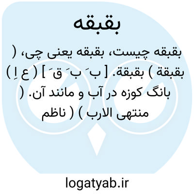 ( بقبقة ) بقبقة. [ ب َ ب َ ق َ ] ( ع اِ ) بانگ کوزه در آب و مانند آن. ( منتهی الارب ) ( ناظم الاطباء ) ( از اقرب الموارد ) ( آنندراج ). || آوازه و شهرت کاذب: و می آمد که بگو وی را که روی زمین پر بقبقه و نام و بانگ خویش کردی من این بقبقه ترا قبول نکنم. ( کیمیای سعادت ). || مایعی که بجوش آید. جوشانده. ( دزی ج 1ص 102 ). || بغبغو. صوت کبوتر: