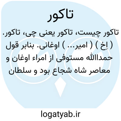 تاکور. ( اِخ ) وی در دوران امیرتیمور گورکان حاکم قسطنطنیه بود. خواندمیر آرد: بعد از آنکه خاطر خطیر خسروجهانگیر از تمهید بزم عیش به او پرداخت... مولانا بدرالدین احمد... را به رسم رسالت بجانب مصر فرستاد...و مقارن آن حال ایلچی تاکور حاکم قسطنطنیه که اکنون به استنبول اشتهار یافته بدرگاه عالم پناه رسید و اشرفی بیشمار و تحف بسیار بگذرانید و خبر اطاعت فرستنده خود بعرض رسانید. ( حبیب السیر چ خیام ج 3 ص 511 ).