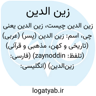 اسم: زین الدین (پسر) (عربی) (تاریخی و کهن، مذهبی و قرآنی) (تلفظ: zaynoddin) (فارسی: زين‌الدين) (انگلیسی: zaynoddin)