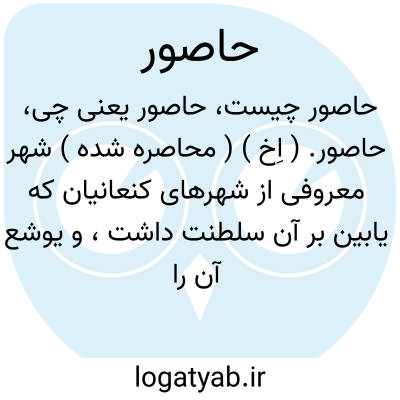 حاصور. ( اِخ ) ( محاصره شده ) شهر معروفی از شهرهای کنعانیان که یابین بر آن سلطنت داشت، و یوشع آن را مفتوح ساخته به آتش سوخت ( یوشع 11:10 و 11 ) لکن ثانیاً آباد شده باز پادشاهی از کنعانیان که هم یابین نام داشت نزد آن شهریار رفت ( ؟ ). و گمان میرود که لفظ یابین هم مثل فرعون لقب سلسله ای از سلاطین کنعانیان بوده و او همان است که لشکرش بسرداری سیسرا بمقابل باراق برآمده هزیمت یافتند. ( داود 4:2-16 ).پس از آن سلیمان ملک آن شهر را حصاردار کرده ( اول پادشاهان 9:15 ) بعد از تغلث فلاسر ( تیگلات پلسر ) آن را مفتوح ساخت و ساکنانش را به آشور به اسیری برد. بعضی موضع شهر مرقوم را تل خریبه و دیگران حضیره و یا خرابه حره دانسته اند. و عظمت آن شهر از آیاتی که در ارمیا ( 49:28-33 ) وارد است بخوبی معلوم میگردد. || شهری که در طرف جنوبی زمین یهودا واقع بود. ( یوشع 15:33 ). || شهر دیگر در همان حدود ( یوشع 15:25 ) که بگمان ربنسن حضیره، و بزعم کاندر همان فرّاره ایست که در نزدیکی بیت جبرین واقع است. شهر دیگری در جنوب یهودا ( یوشع 15:25 ) که بگمان کاندر همان خشرم میباشد که بشمال بئر شبع واقع است. و دور نیست که این سه شهر آخری یکی باشند. ( قاموس کتاب مقدس ).