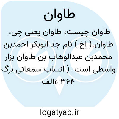 طاوان.( اِخ ) نام جد ابوبکر احمدبن محمدبن عبدالوهاب بن طاوان بزار واسطی است. ( انساب سمعانی برگ 364 «الف » ).