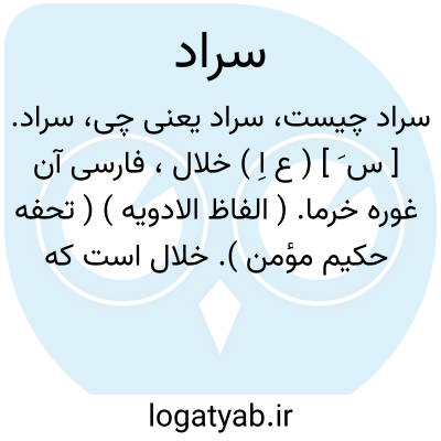 سراد. [ س َ ] ( ع اِ ) خلال، فارسی آن غوره خرما. ( الفاظ الادویه ) ( تحفه حکیم مؤمن ). خلال است که غوره خرما باشد. ( برهان ). غوره خرمای سخت شده. || خرمابن که از تشنگی خشک و پژمرده باشد. ( آنندراج ) ( منتهی الارب ).