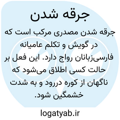جرقه شدن. [ ج ِ رِق ْ ق َ ش ُ دَ ] ( مص مرکب ) در تداول عامه از جا دررفتن، خشمناک شدن. ( یادداشت مؤلف ).