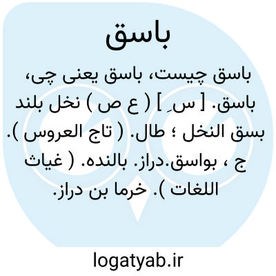 باسق. [ س ِ ] ( ع ص ) نخل بلند بسق النخل؛ طال. ( تاج العروس ). ج، بواسق.دراز. بالنده. ( غیاث اللغات ). خرما بن دراز. بالیده. ( آنندراج ): تخم خرمایی، به تربیتش [ خدای تعالی ] نخل باسق گشته. ( گلستان ). || خرمایی است طیب و زردرنگ. ( تاج العروس ). || میوه ای است زردرنگ نفیس. ( آنندراج ) ( ناظم الاطباء ).