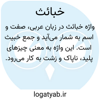 ۱ - ( مصدر ) پلید شدن ناپاک گفتن. ۲ - ( اسم ) پلیدی ناپاکی. یا خبائث ذات. بدگوهری پلید گوهری. یا خبائث طینت. خبائث ذات. یا خبائث نفس. پلیدی نفس.