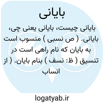 بایانی. ( ص نسبی ) منسوب است به بایان که نام راهی است در تنسیق ( ظ: نسف ) بنام بایان. ( از انساب سمعانی ).