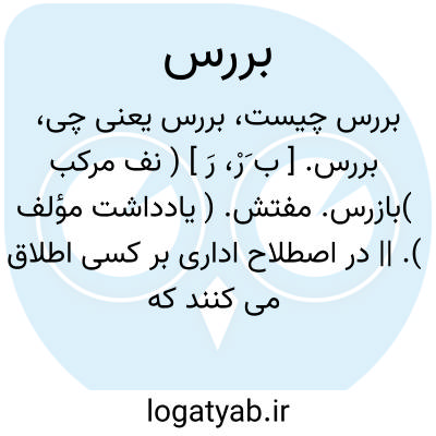 بررس. [ ب َرْ، رَ ] ( نف مرکب )بازرس. مفتش. ( یادداشت مؤلف ). || در اصطلاح اداری بر کسی اطلاق می کنند که نوشته ها و کتاب ها راغوررسی و مطالعه می کند و درباره آنها نظر می دهد.