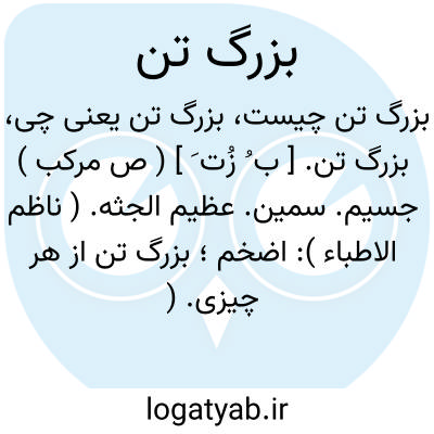 بزرگ تن. [ ب ُ زُت َ ] ( ص مرکب ) جسیم. سمین. عظیم الجثه. ( ناظم الاطباء ): اضخم؛ بزرگ تن از هر چیزی. ( یادداشت بخط دهخدا ).