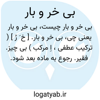 بی خر و بار. [ خ َ رُ ] ( ترکیب عطفی، اِ مرکب ) بی چیز. فقیر. رجوع به ماده بعد شود.