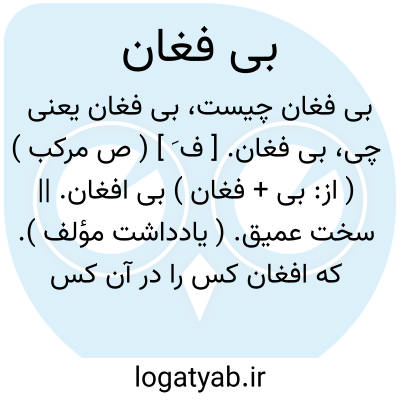 بی فغان. [ ف َ ] ( ص مرکب ) ( از: بی + فغان ) بی افغان. || سخت عمیق. ( یادداشت مؤلف ). که افغان کس را در آن کس نشنود. که افغان کس به کس نرسد:
