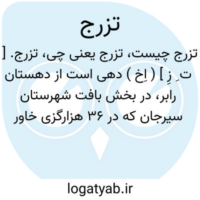 تزرج. [ ت ِ زِ ] ( اِخ ) ده کوچکی است از دهستان سبلوئیه در بخش زرند شهرستان کرمان که در 30 هزارگزی جنوب باختری زرند و 10 هزارگزی باختر راه مالرو زرند به رفسنجان واقع است و 10 تن سکنه دارد. ( از فرهنگ جغرافیایی ایران ج 8 ).
