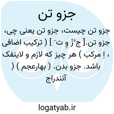 جزو تن.[ ج ُزْ وِ ت َ ] ( ترکیب اضافی، اِ مرکب ) هر چیز که لازم و لاینفک باشد. جزو بدن. ( بهارعجم ) ( آنندراج ). آن چیز که ملازم تن باشد و از بدن جدا نشود: