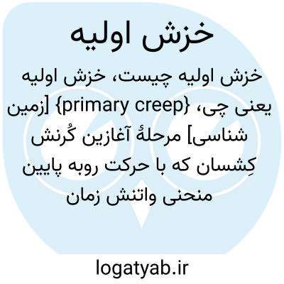 {primary creep} [زمین شناسی] مرحلۀ آغازین کُرنش کِشسان که با حرکت روبه پایین منحنی واتنش زمان طولانی را شکل می دهد