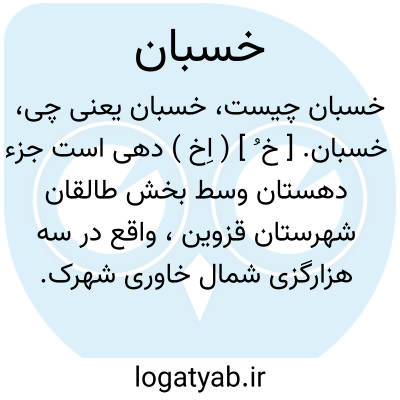 خسبان. [ خ ُ ] ( اِخ ) دهی است جزء دهستان وسط بخش طالقان شهرستان قزوین، واقع در سه هزارگزی شمال خاوری شهرک. کوهستانی، سردسیر. آب آن از چشمه و رودخانه جرنیان. محصولات آن غلات، یونجه، سیب زمینی، ارزن، عسل و لبنیات. شغل اهالی آن زراعت، قالیچه، گلیم و جاجیم و چادرشب بافی. راه آن مالرو است. ( از فرهنگ جغرافیائی ایران ج 1 ).