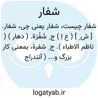 لغت نامه دهخدا شفار. [ ش ِ ] ( ع اِ ) ج ِ شَفْرَة. ( دهار ) ( ناظم الاطباء ). ج ِ شفرة، بمعنی کار بزرگ و... ( آنندراج ). رجوع به شفرة شود.