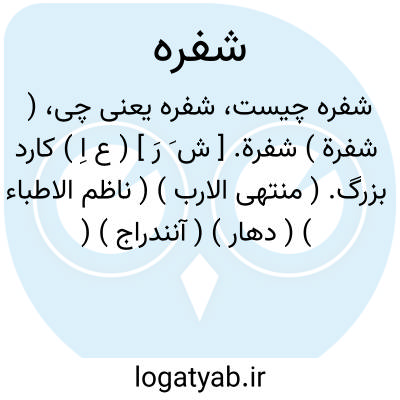 ( اسم ) ۱ - کارد بزرگ و پهن. ۲ - تیزی شمشیر. ۳ - افزار آهنین که دم آن تیز است و بدان پشت چرم را می تراشند نشگرده جمع: شفر شفار شفرات.