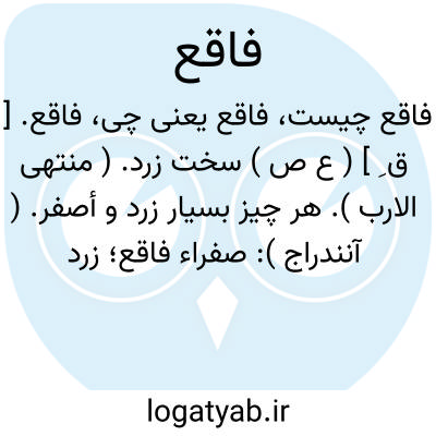 فاقع. [ ق ِ ] ( ع ص ) سخت زرد. ( منتهی الارب ). هر چیز بسیار زرد و أصفر. ( آنندراج ): صفراء فاقع؛ زرد زلال. زردی زرد. ( یادداشت بخط مؤلف ). || هر رنگ خالص بی آمیغ، سپید باشد یا غیر آن. ( منتهی الارب ): احمر فاقع؛ سرخ خالص. ( یادداشت بخط مؤلف ).