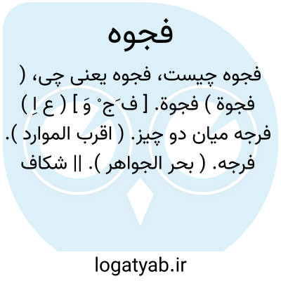 ( فجوة ) فجوة. [ ف َج ْ وَ ] ( ع اِ ) فرجه میان دو چیز. ( اقرب الموارد ). فرجه. ( بحر الجواهر ). || شکاف میان دو کوه و جز آن. ( منتهی الارب ). فراخی میان دو کوه. ( ترجمان علامه جرجانی ترتیب عادل ). || زمین فراخ. ( منتهی الارب ). قسمتی از زمین که گشاده باشد: بینک و بین القبلة فجوة. ( اقرب الموارد ). || گشادگی میان سرای. ( منتهی الارب ). ساحت خانه. ( اقرب الموارد ). || رده میان بطن مقدم و مؤخر. ( از بحر الجواهر ). ج، فجوات، فِجاء. ( اقرب الموارد ) ( منتهی الارب ).