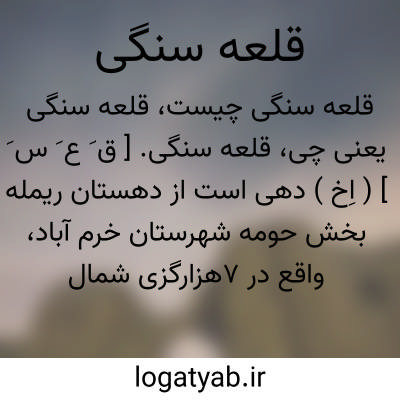 قلعه سنگی. [ ق َ ع َ س َ ] ( اِخ ) دهی است از دهستان ریمله بخش حومه شهرستان خرم آباد، واقع در 7هزارگزی شمال باختری خرم آباد و 3هزارگزی خاور خرم آباد به کرمانشاه موقع جغرافیایی آن جلگه و معتدل و مالاریایی است و سکنه آن 300 تن است. آب آن از رودخانه پاپی و محصول آن غلات و لبنیات و شغل اهالی زراعت و گله داری و صنایع دستی زنان فرش بافی و سیاه چادربافی است. راه اتومبیل رو دارد و ساکنین از طایفه سپه وند هستند و برای تعلیف احشام به ییلاق و قشلاق میروند. ( از فرهنگ جغرافیایی ایران ج 6 ).