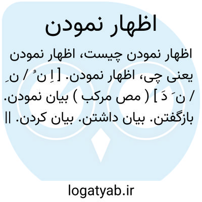 اظهار نمودن. [ اِ ن ُ / ن ِ / ن َ دَ ] ( مص مرکب ) بیان نمودن. بازگفتن. بیان داشتن. بیان کردن. || آشکار کردن. ( ناظم الاطباء ). پیدا کردن. هویدا ساختن. و رجوع به اظهار کردن شود.