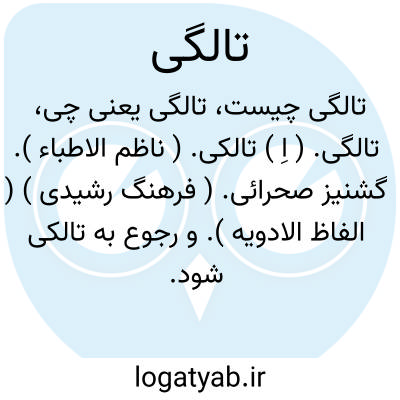 تالگی. ( اِ ) تالکی. ( ناظم الاطباء ). گشنیز صحرائی. ( فرهنگ رشیدی ) ( الفاظ الادویه ). و رجوع به تالکی شود.