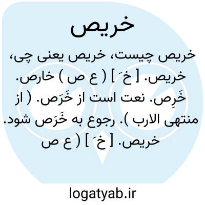 خریص. [ خ َ ] ( ع ص ) خارص. خَرِص. نعت است از خَرَص. ( از منتهی الارب ). رجوع به خَرَص شود.