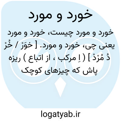 خورد و مورد. [ خوَرْ / خُرْ دُ مُرْدْ ] ( اِ مرکب، از اتباع ) ریزه پاش که چیزهای کوچک باشد. ( لغت محلی شوشتر نسخه خطی ). خرد و مرد.