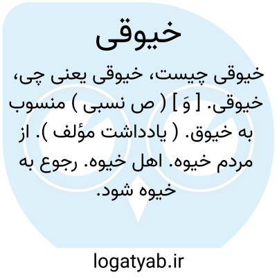 خیوقی. [ وَ ] ( ص نسبی ) منسوب به خیوق. ( یادداشت مؤلف ). از مردم خیوه. اهل خیوه. رجوع به خیوه شود.