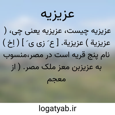 ( عزیزیة ) عزیزیة. [ ع َ زی ی َ ] ( اِخ ) نام پنج قریه است در مصر،منسوب به عزیزبن معز ملک مصر. ( از معجم البلدان ).