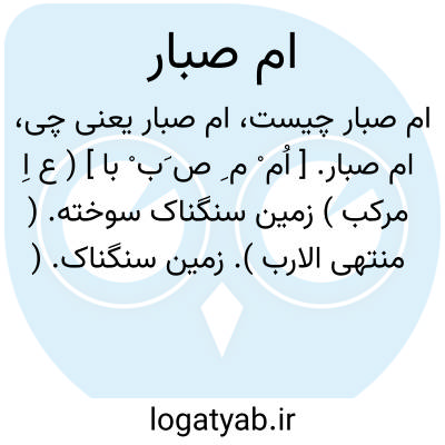 ام صبار. [ اُم ْ م ِ ص َب ْ با ] ( ع اِ مرکب ) زمین سنگناک سوخته. ( منتهی الارب ). زمین سنگناک. ( مؤید الفضلاء ) ( آنندراج ). زمین. ( از المرصع ). سنگلاخ. ( مهذب الاسماء ). || بلا. ( منتهی الارب ) ( آنندراج ). داهیه. ( المرصع ). || جنگ سخت. ( منتهی الارب ) ( آنندراج ). جنگ. ( از المرصع ). و رجوع به ام صبور شود.
