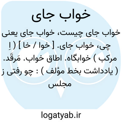 خواب جای. [ خوا / خا ] ( اِ مرکب ) خوابگاه. اطاق خواب. مَرقَد. ( یادداشت بخط مؤلف ):