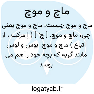ماچ و موچ. [ چ ُ ] ( اِ مرکب، از اتباع ) ماج و موج. بوس و لوس مانند گربه که بچه خود را هم می بوسد و هم می لیسد. ( ناظم الاطباء ). بمعنی بوس و لوس باشد یعنی بوسیدن و لیسیدن چنانکه گربه کند بچه خود را. ( برهان ). بوسه های پیاپی باصدا: ماچت نبود موچت نبود دندانه گازکت چه بود؟ ( یادداشت به خط مرحوم دهخدا ). رجوع به ماج و موج شود.