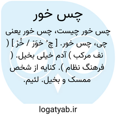 چس خور. [ چ ُ خوَرْ / خُرْ ] ( نف مرکب ) آدم خیلی بخیل. ( فرهنگ نظام ). کنایه از شخص ممسک و بخیل. لئیم. سخت ممسک.خسیس. آنکس که نه خود از آنچه دارد بهره برگیرد و نه دیگران را بهره مند سازد. کسی که با داشتن ثروت در امر معیشت امساک و بخیلی کند. رجوع به چس خوری شود.