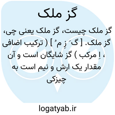 گز ملک. [ گ َ زِ م ُ ] ( ترکیب اضافی، اِ مرکب ) گز شایگان است و آن مقدار یک ارش و نیم است به چیزکی کم. ( برهان ) ( آنندراج ). رجوع به گز شایگان شود.
