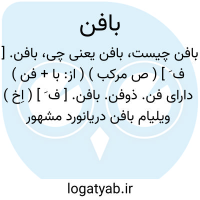 بافن. [ ف َ ] ( اِخ ) ویلیام بافن دریانورد مشهور انگلیسی که بسال 1584 م. بدنیا آمد و بسال 1622 م. درگذشت. در سفر اکتشافی که بسال 1615 م. به دریاهای شمالی کرد تا مدار 78 درجه شمالی پیشرفت و سفرنامه ای نیز در مشاهدات خود نوشت. بافن در ایران، در محاصره جزیره هرموز هنگامی که میخواست پرتقالیها را از ایران براند کشته شد. و نیز رجوع به بافن در قاموس الاعلام ترکی شود.