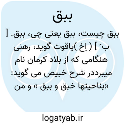 ببق. [ ب َ ] ( اِخ )یاقوت گوید، رهنی هنگامی که از بلاد کرمان نام میبرددر شرح خبیص می گوید: «بناحیتها خبق و ببق » و من ندانستم مقصود از خبق و ببق چیست. ( از معجم البلدان ). ظاهراً نام محلی بوده است چنانکه در مقامات عرفای بم آمده است که «پیر محمد... به بم آمد و... چند روزی حکومت کرد و ببق و خبیص را به تالان داد. و جبال بارز وچند محال دیگر را». و رجوع به حواشی تاریخ وزیری چ باستانی پاریزی ص 256 و مرآت البلدان ج 1 ص 162 شود.