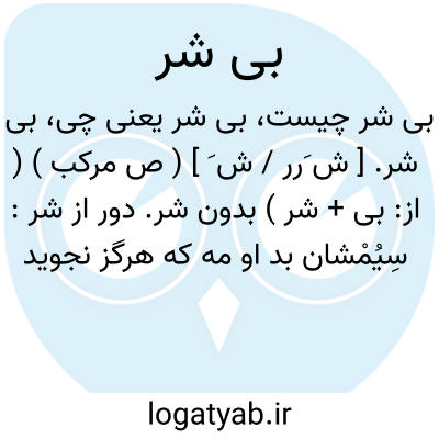 بی شر. [ ش َرر / ش َ ] ( ص مرکب ) ( از: بی + شر ) بدون شر. دور از شر: