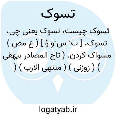 تسوک. [ ت َ س َوْ وُ ] ( ع مص ) مسواک کردن. ( تاج المصادر بیهقی ) ( زوزنی ) ( منتهی الارب ) ( آنندراج ) ( ناظم الاطباء ) ( متن اللغة ) ( از اقرب الموارد ) ( از المنجد ).