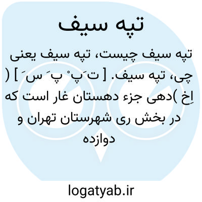 تپه سیف. [ ت َپ ْ پ َ س َ ] ( اِخ )دهی جزء دهستان غار است که در بخش ری شهرستان تهران و دوازده هزارگزی شمال باختری شهر ری سر راه عمومی رباط کریم به ایستگاه راه آهن واقع است. جلگه ای معتدل است و 15 تن سکنه دارد. آب آن از قنات و محصول آن غلات و صیفی و چغندر قند و شغل اهالی آنجا زراعت است. راه شوسه دارد و تپه ای قدیمی در آنجاست. ( از فرهنگ جغرافیائی ایران ج 1 ). این ده را تپه سفید هم گویند.