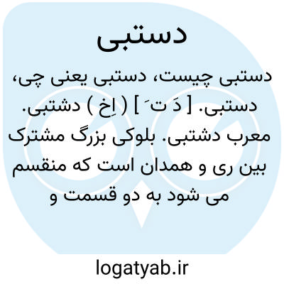 دستبی. [ دَ ت َ ] ( اِخ ) دشتبی. معرب دشتبی. بلوکی بزرگ مشترک بین ری و همدان است که منقسم می شود به دو قسمت و قسمت متعلق به همدان مشتمل بر قریب نود قریه است که یکی از آنها دستبی است. ( از معجم البلدان ). دو رستاق دستبی که یکی را دستبی ری میخوانند و آن دیگری را دستبی همدان، و هر دو را موسی بن بغا جمع کرد وهر دو را یک کوره گردانید و غزوین نام نهاد. ( تاریخ قم ص 57 ). نام ناحیه دستبی از دیرباز در نوشته های مورخین و جغرافی نویسان آمده است و این ناحیه دارای سابقه تاریخی طولانی است از جمله آنکه در زمان پادشاهی یزدگرد ساسانی بنا به تقاضای امپراطور روم پادشاه ایران حاکم ناحیه دشتبی را بعنوان نماینده خود به روم میفرستد تا ولی عهد آن امپراطوری را که هنوز به سن رشد نرسیده است یاری نماید و امور مملکت را بدست گیرد. ناحیه دستبی آنچنانکه از کتاب المسالک و الممالک ابن خردادبه برمی آید در هنگام حمله عرب به ایران به دو قسمت دشتبی همدان و دشتبی ری تقسیم می شده است و آنطور که از نوشته حمداﷲ مستوفی برمیآید این ناحیه در زمان هارون الرشید به سه بخش تقسیم شد که یکی جزء ری و دیگری جزء همدان و قسمت سوم جزء قزوین گشت و با توجه به برخی نشانه ها میتوان گفت که مجموع سه ناحیه مزبور دهستانهای کنونی: خرقان، دودانگه، افشاریه و شاید سردرود و درجزین همدان و خلجستان قم را در بر میگرفته است. در حدود قرن سوم هَ. ق. بیشتر این نواحی سه گانه جزء قزوین می گردد ولی ناحیه ای که امروز نام دشتبی را بر خود دارد بسیار کوچکتر از دوران گذشته است. این دهستان که اکنون با دو دهستان زهرا و رامند بخش زهرا را تشکیل میدهد در جنوب قزوین واقع شده و محدود است از شمال به دهستان اقبال از مشرق به دیه پیر یوسفان از دهستان اقبال و سه قریه از دهستان زهرا و دهستان رامند و از مغرب به جاده قزوین - همدان و دهستان قاقزان. کلیه دهات این دهستان در ناحیه ٔدشت قرار دارد و بیشتر آنها از آب قنات استفاده می کنند و تعداد کمی از آنها از آب خررود مشروب می شوند. ( از سرزمین قزوین، دکتر پرویز ورجاوند صص 268-273 ).