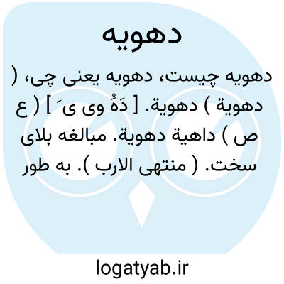 ( دهویة ) دهویة. [ دَهَْ وی ی َ ] ( ع ص ) داهیة دهویة. مبالغه بلای سخت. ( منتهی الارب ). به طور مبالغه بلای سخت. ( منتهی الارب ) ( ناظم الاطباء ). و رجوع به دهواء شود.