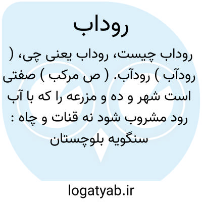 ( رودآب ) رودآب. ( ص مرکب ) صفتی است شهر و ده و مزرعه را که با آب رود مشروب شود نه قنات و چاه: سنگویه بلوچستان سه رشته قنات و شش مزرعه رودآب دارد. ( مرآت البلدان ).